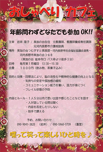 体験を綴り、感動に出会う、生きることの素晴らしさを実感できる講座であり、 会話を通して人間関係をよくする話力を身に付けたり、お互いに魅力を引出し輝かせる講座でもあります。